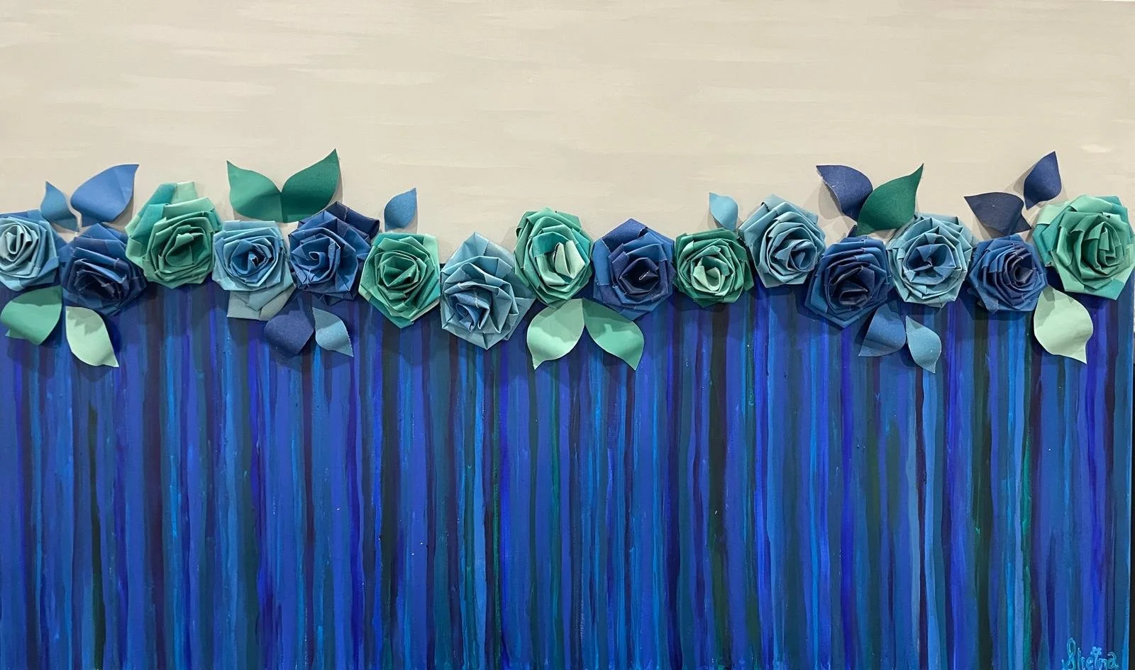 All of the works in this series, including the floral waterfall here, have been showcased at least once at LA Fashion Week, a testament to their bold presence and artistic impact. Available in both vivid and neutral palettes, they can be customized to complement and elevate any space.